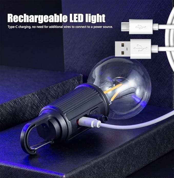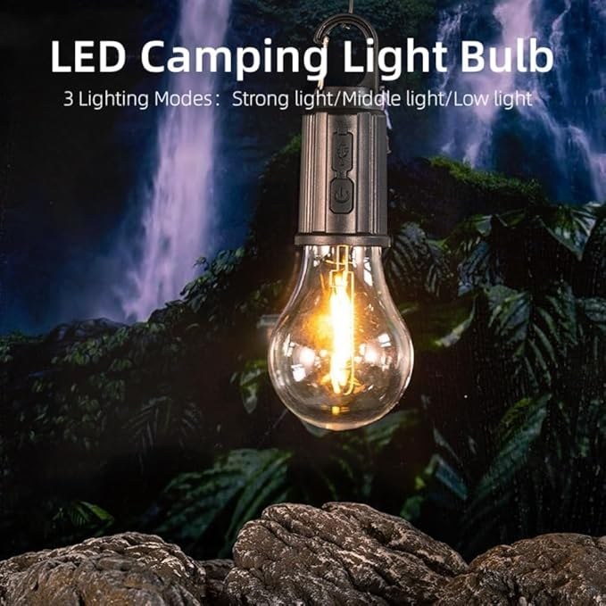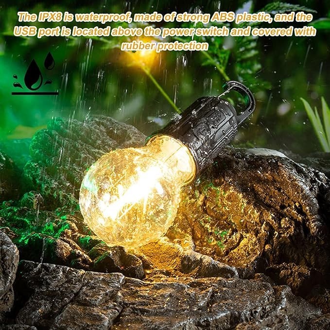چراغ آویز شارژی چادر مدل HK01 دارای لامپ فیلامنتی و نوردهی خوبی دارد.